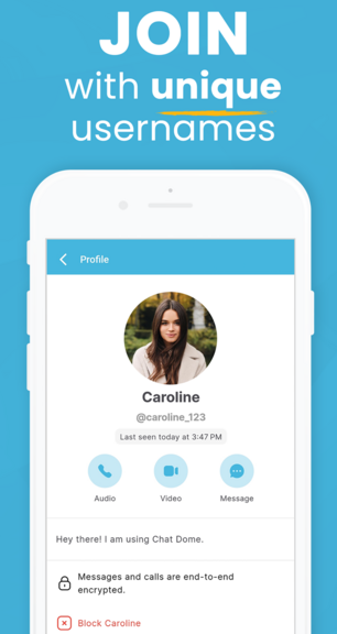 Chat Dome is a private messenger app that lets you chat anonymously, share storie & files securely, and make HD calls without sacrificing privacy.